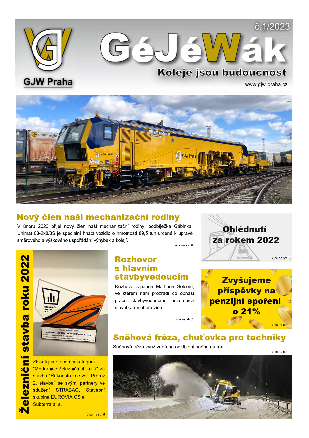 Prolistujte si náš firemního časopis GéJéWák! Přečtete si o našich stavbách, nahlédnete do světa naší mechanizace a objevíte spoustu dalších zajímavostí.